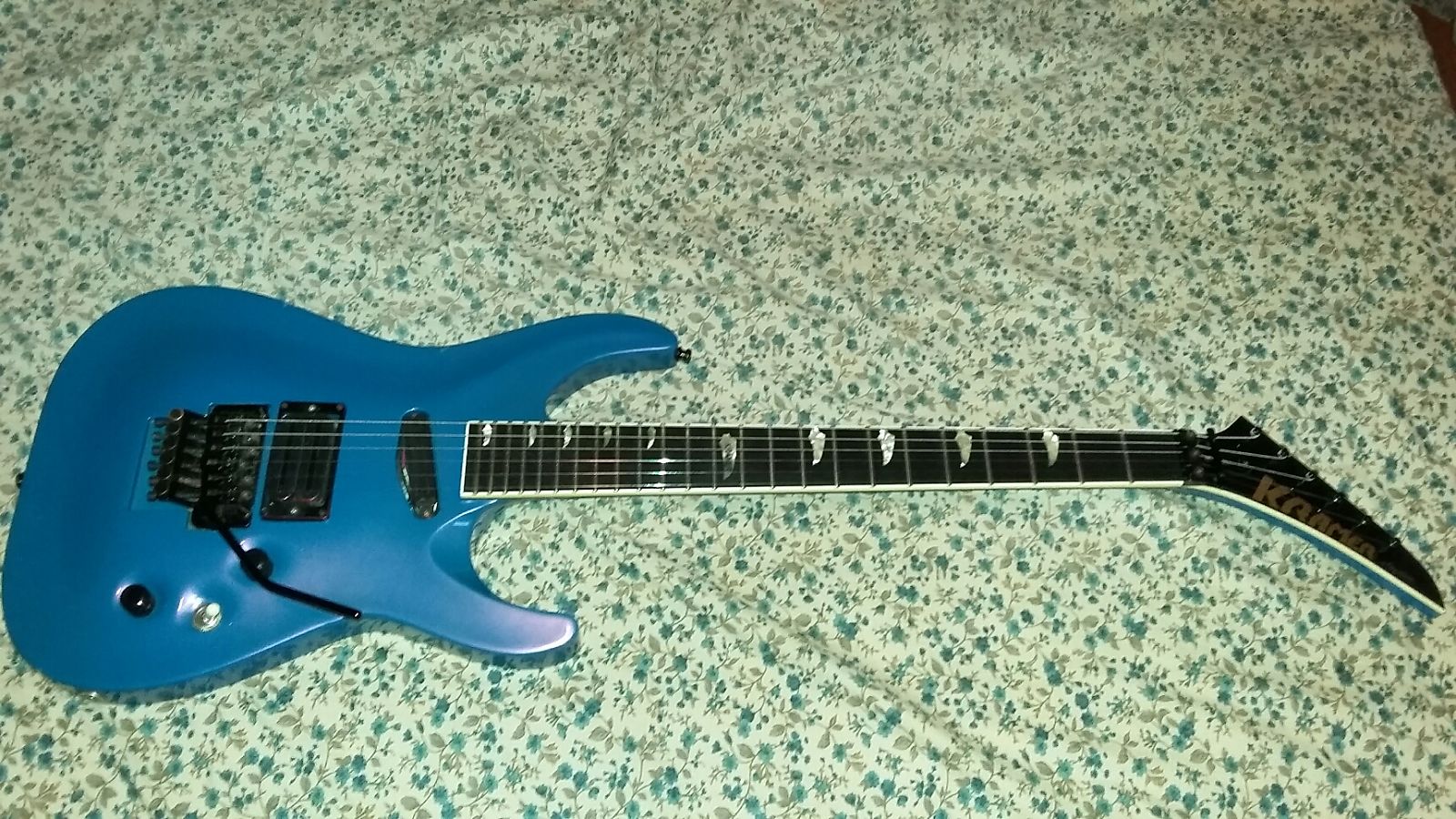 The 1987 Kramer Stagemaster Custom stands as one of the finest examples of Kramer’s American Series, crafted by ESP in Japan with unmatched precision. Its striking Flip/Flop Blue finish, sculpted basswood body, fast maple neck, and bound ebony fingerboard with MOP inlays make this guitar as visually stunning as it is comfortable to play. Built at the height of Kramer’s dominance, the Stagemaster represents the perfect balance of artistry, playability, and performance.