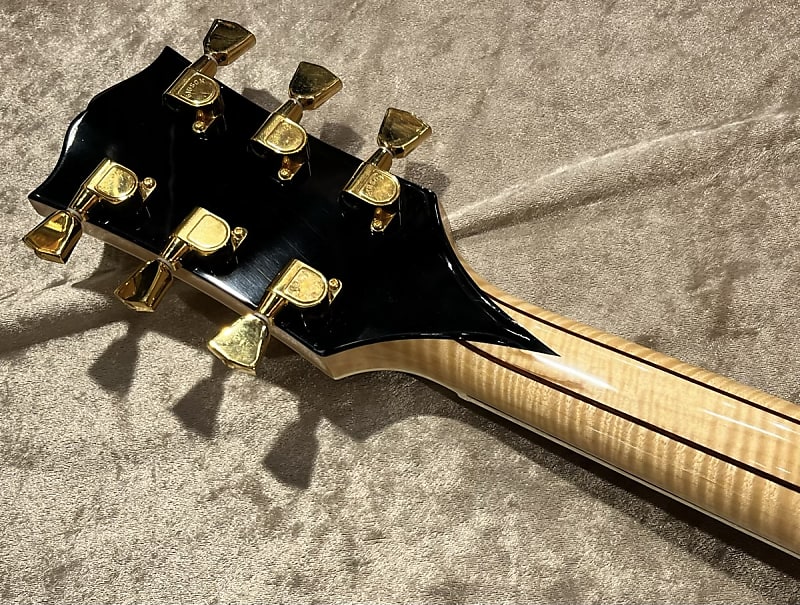 The 5-piece neck is made of figured maple and walnut for strength and sound characteristics.