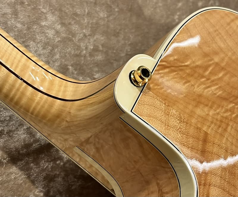 The large 17-inch body is carved out of top-quality spruce veneer and back of top-quality figured maple veneer,