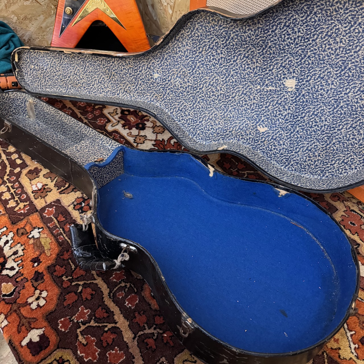 To the best of my knowledge, this is the earliest Hofner President serial number I have found. It’s from the first year of President guitars – 1953 – and has the original hard case (painted) included too. A true rarity, especially with that Straten tailpiece! According to the previous owner, the first owner he purchased it off got this in Germany in the 1950s on his way from Africa to the UK, and kept it for many decades. It’s totally original except the low-E machine head button, and in wonderful condition – truly. It’s one of the rarest Hofner guitars you will find. Don’t miss out! Please have a close look at the high resolution photographs below, as these form part of our description.