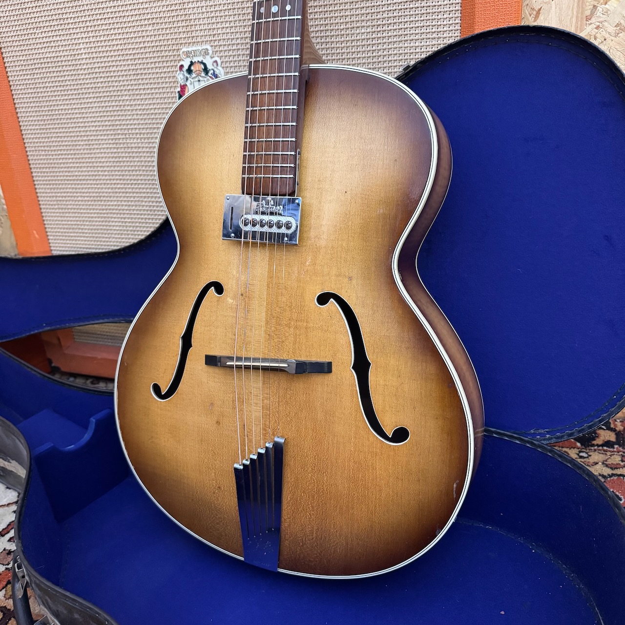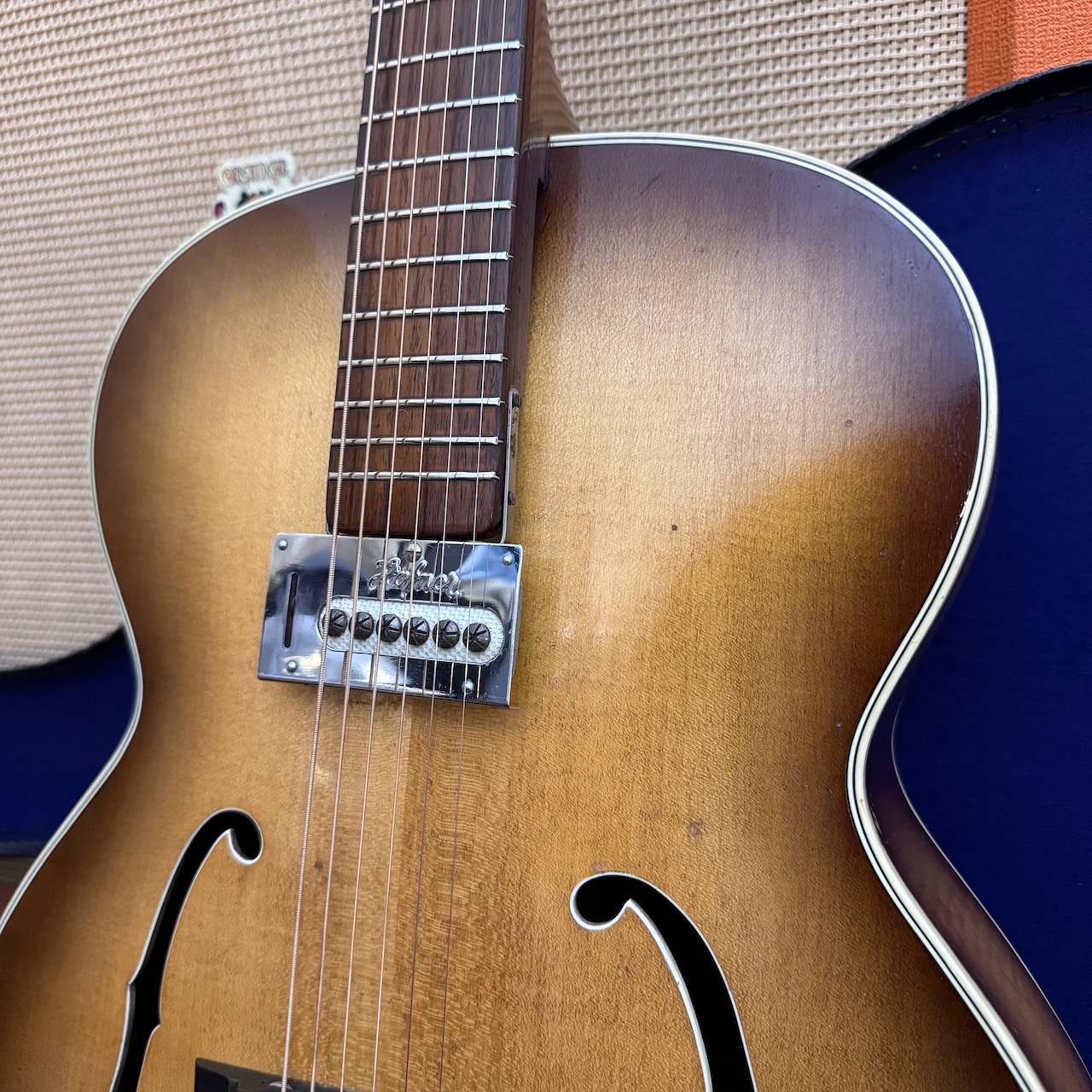 Vintage 1958 Hofner Senator Sunburst Electric Archtop Guitar Case 1950s