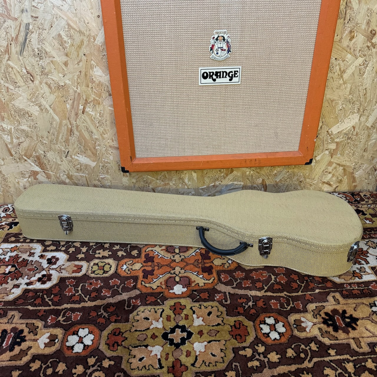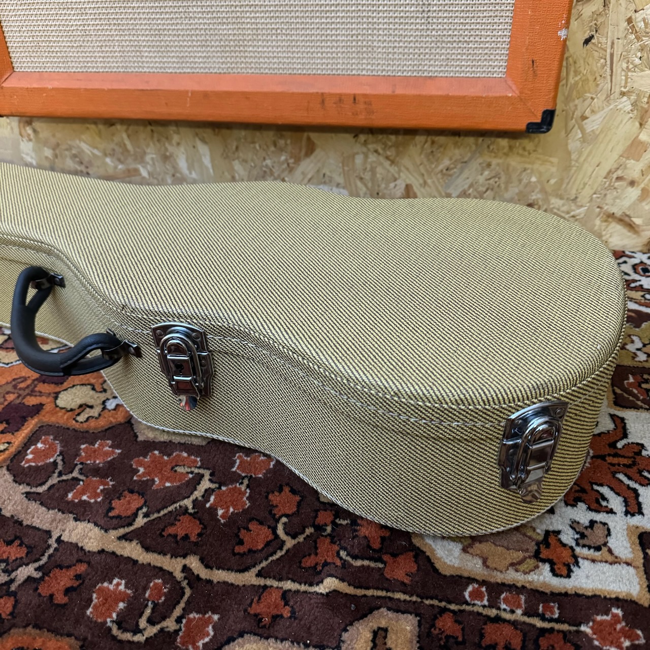 It’s got bumps and scrapes all over the guitar, some would say natural relic’ing, which is awesome. It plays great and sounds awesome with the flat wounds I have had put on it! Comes with a fitted hard case too. You’ll really not be disappointed with this one – it’s a beauty! Please see the pictures below as these form part of my description.