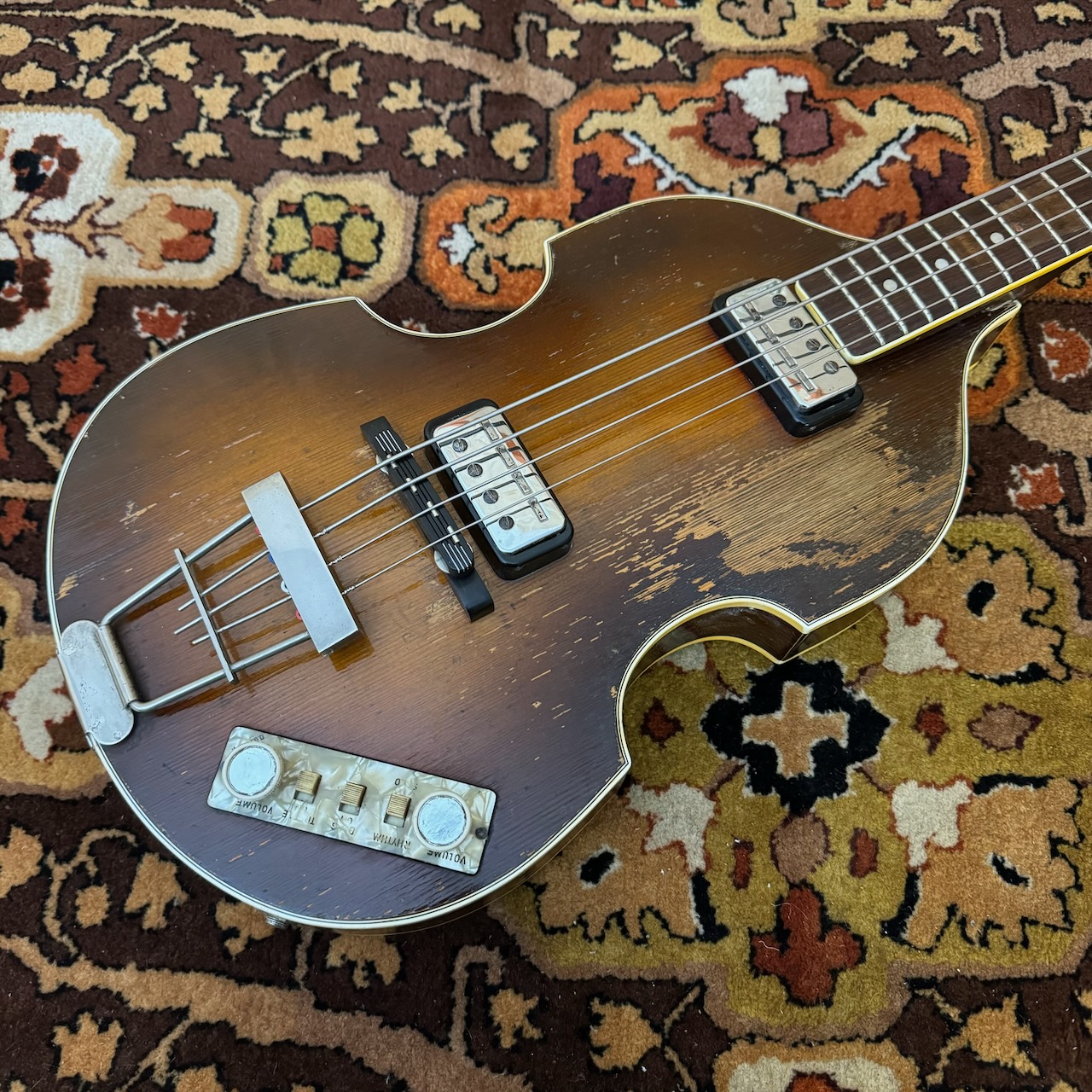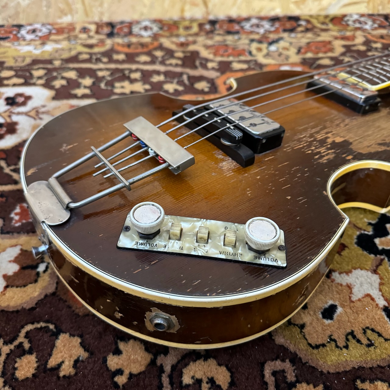 I’m so excited to offer this beauty for sale – an original 1964 Hofner 500/1 in players grade (and affordable) condition. The serial number dates this to 1964, the pot code is 1964, and the characteristics too, which is the same as McCartney’s. It’s THE bass to have for sure. When I got this, the electrics were dead, so I had both pickups rewound to bring it back to life. The neck has been secured in the past, and it is now as solid as a rock and will not move.