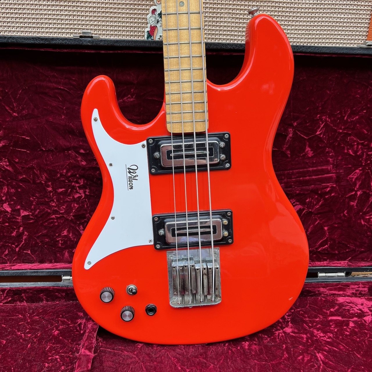Vintage 1970s Wilson Watkins WEM Rapier Red Lefty Bass Guitar