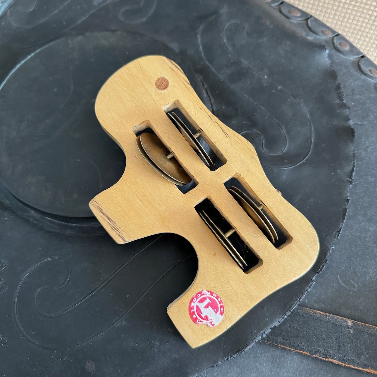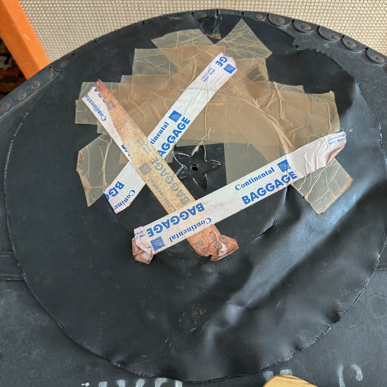 I am so excited to offer this incredible piece of history for sale. This was owned by Mitch Mitchell of the Jimi Hendrix Experience, and was taken travelling / tour with him over the years. It’s a Billy Gladstone Vacuum Drum Pad, with an additional elephant tambourine included. Underneath the pad are continental baggage stickers/tape where Mitch would have taken this away with him on tour. It’s an incredible piece of history – grab it while you can! Please see the pictures below as these form part of my description.